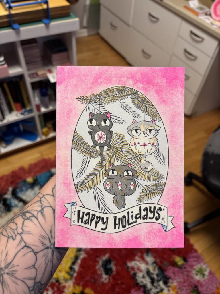 I’ve been admiring Riso printing for a while now, and we just recently made our holiday cards using the Riso printer at the Ignite Studio.