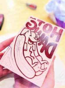 In addition to Riso, I’ve been taking monthly lino print classes where I illustrate and hand-carve a stamp to use for greeting cards. I’m leaning more into physical forms of making – less digital art – because I’m able to play and experiment more. For example, the other day I was making illustrations on Shrinky dinks to make into silly hair clips for myself!