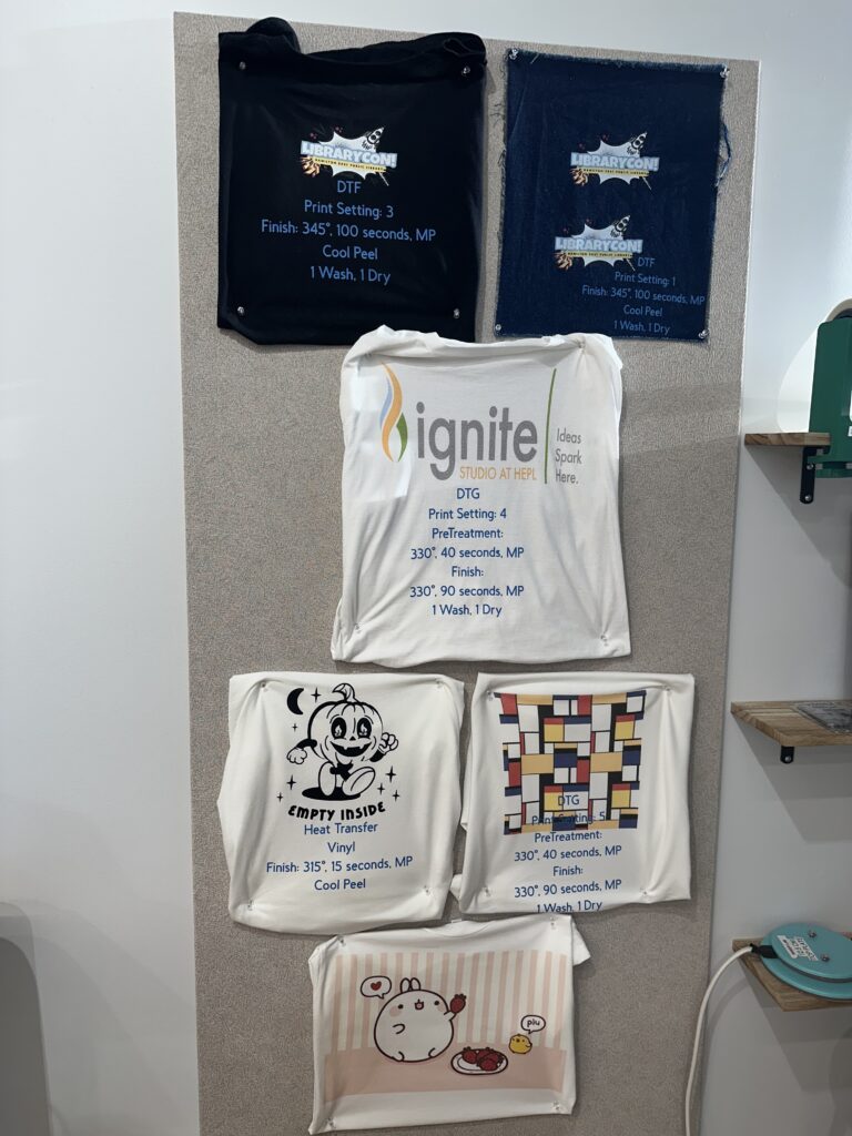 We can’t wait to see what patrons can make with our new Direct to Garment and Direct to Film printer! You can check out our online video guide and training course here to take your first step toward getting certified on the Surecolor. The course covers the full process for both Direct to Garment and Direct to Film printing, from pre-treatment to finishing details. Then, you’ll meet with one of our staff here through our Book an Expert program. Staff will provide one-on-one guidance and assistance through your first project!